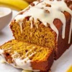Once the Pumpkin Banana Bread has cooled completely, drizzle your cream cheese glaze over the top for a touch of sweetness. Slice and serve!